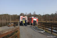 Im Wald am Schnepfenweg brennt eine Jagdhütte und der Wald. Neben der Feuerwehr Grafenwald ist die Berufsfeuerwehr und die Freiwillige Feuerwehr Kirchhellen im Einsatz.