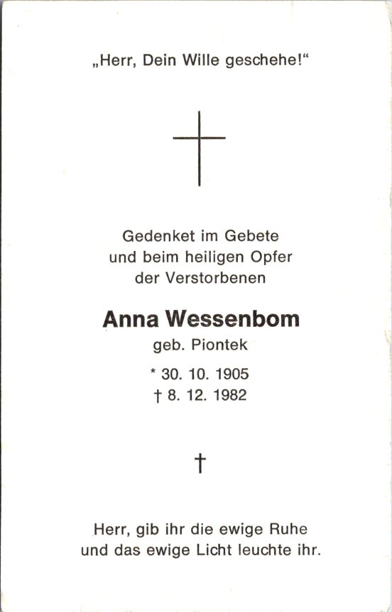 Wessenbom, Anna, geb. Piontek, 1905-1982 NEU