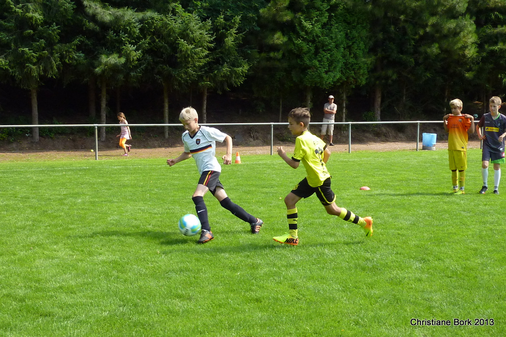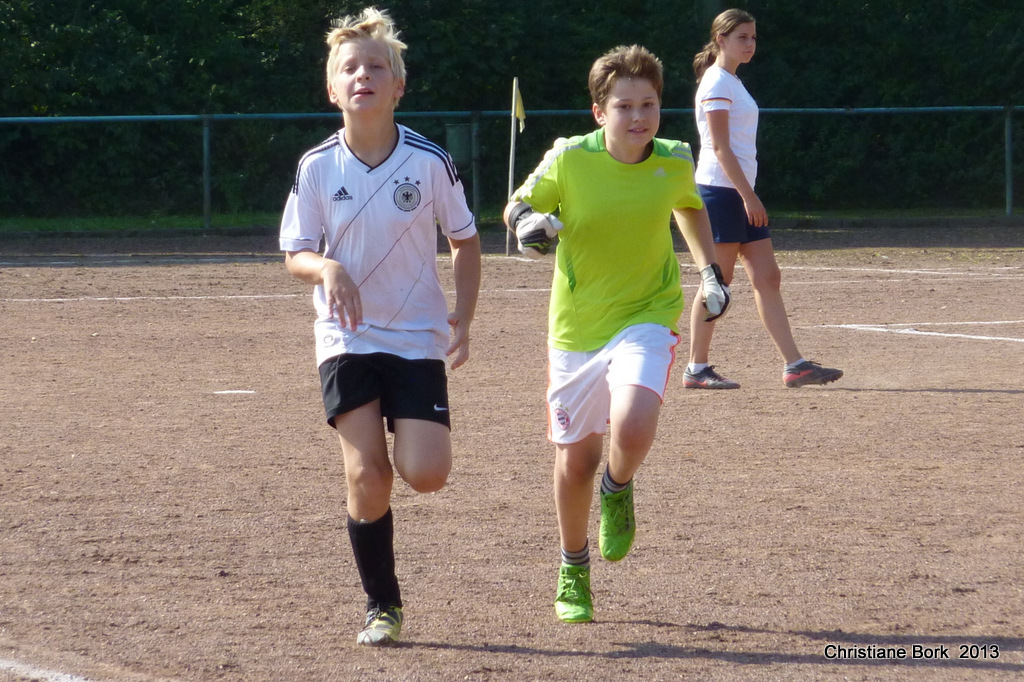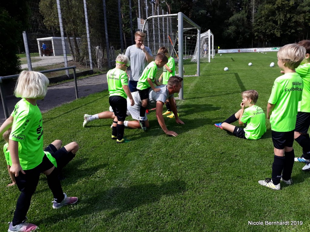 Am Samstag werden wir das Wöller Fußballabzeichen abnehmen. Zum Abschluss wird ein Mixturnier stattfinden. Dort spielen dann die Trainer gegen die verschiedenen Trainingsgruppen.