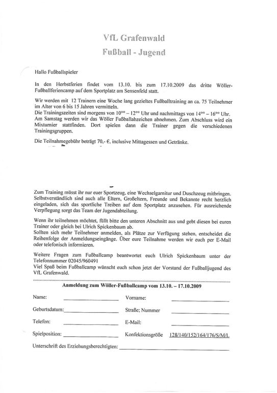 Anmeldung zum Fußballcamp 2008 in Grafenwald