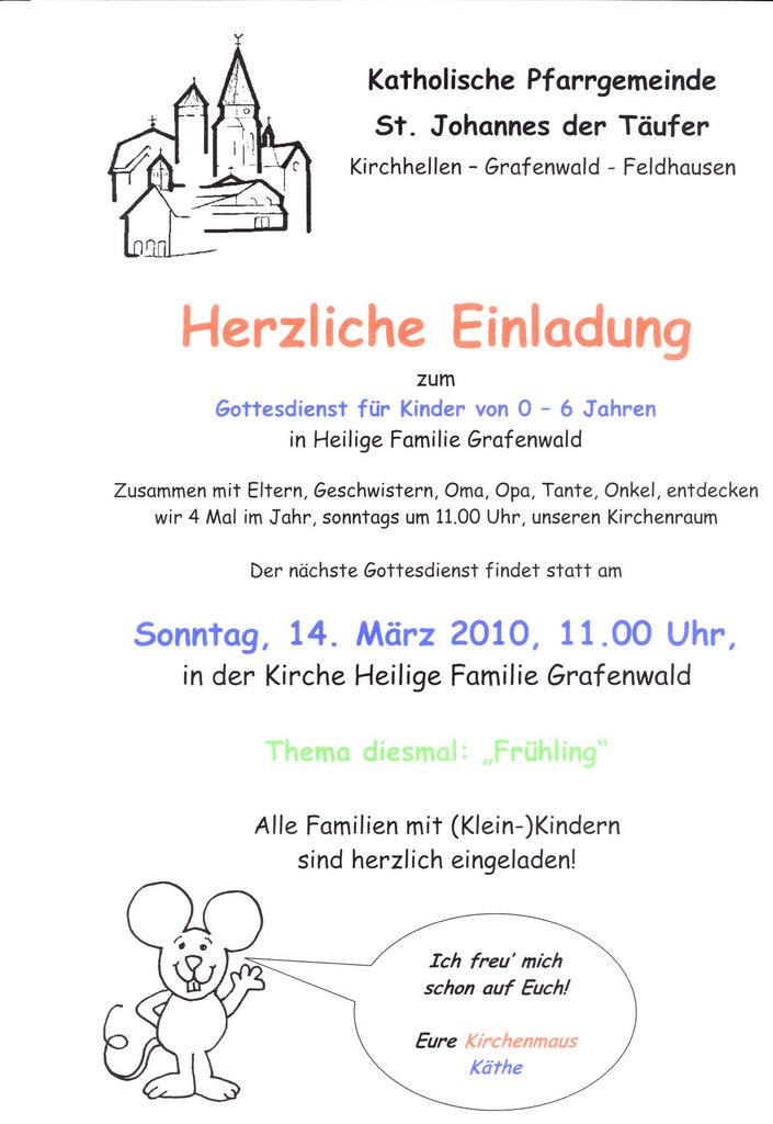 Am 13. Juni 2010 findet wieder ein Gottesdienst für die Kleinsten statt |