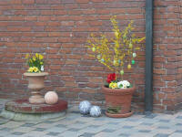 Daneben steht ein Tisch mit Ostereiern und Süßigkeiten für Kinder und Nachbarn. |