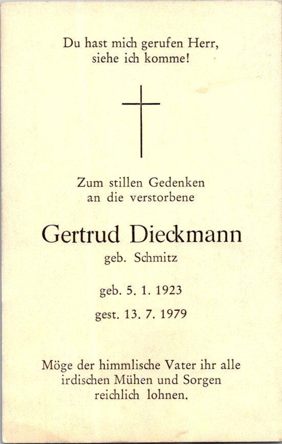 Dieckmann, Gertrud, geb. Schmitz, 1923-1979 NEU