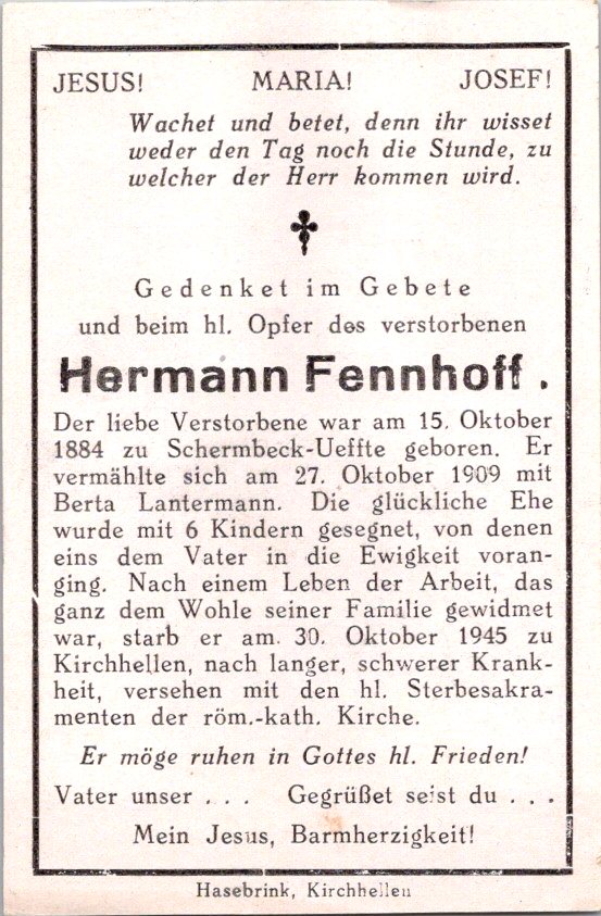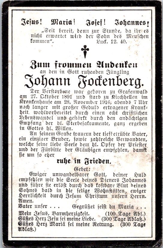 Totenzettel Buchstabe F