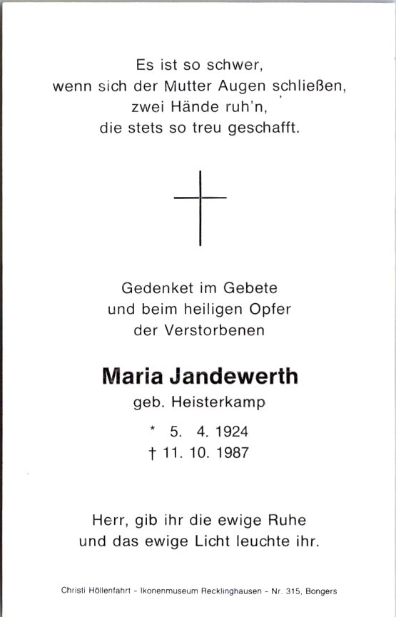 Jandewerth, Maria, geb. Heisterkamp, 1924-1987 NEU