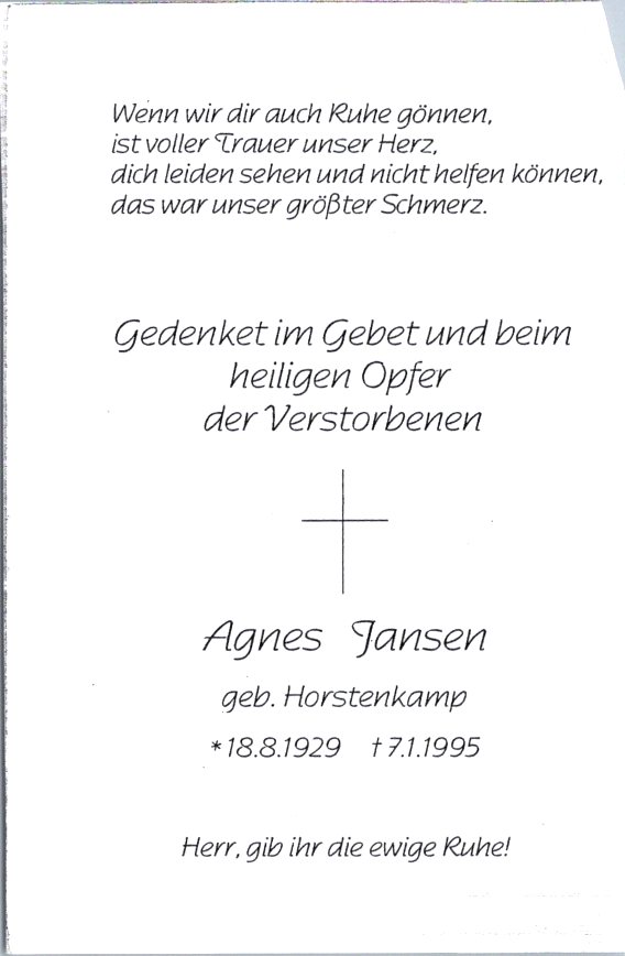 Jansen, Agnes, geb. Horstenkamp, 1929-1995 NEU