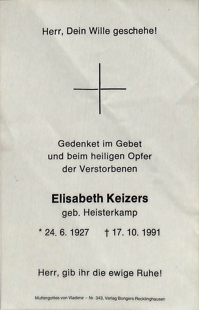 Keizers, Elisabeth, geb. Heisterkamp, 1927-1991