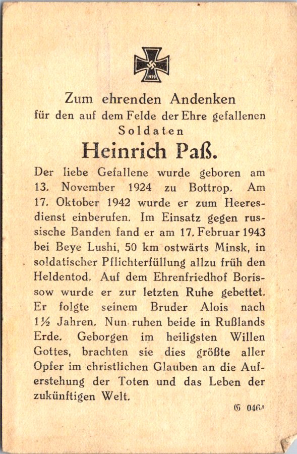 - Paß, Heinrich, 1924-1943 NEU