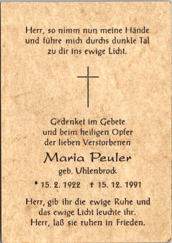 Totenzettel Buchstabe P