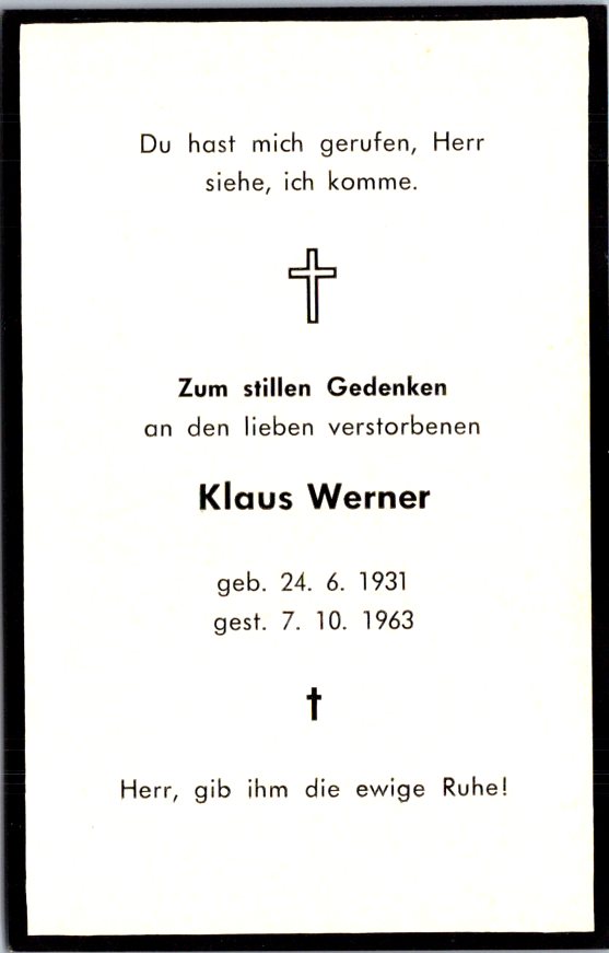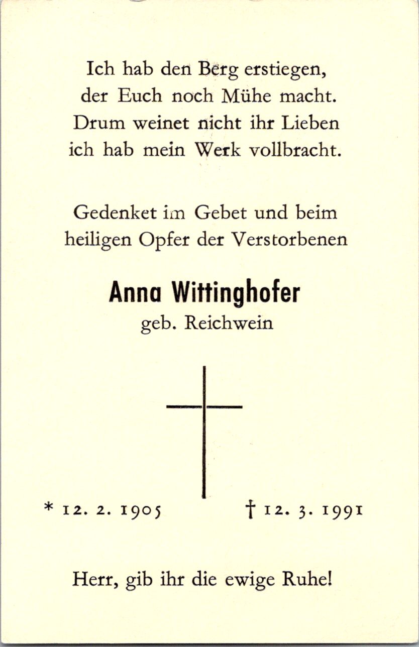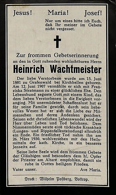 Totenzettel Buchstabe W