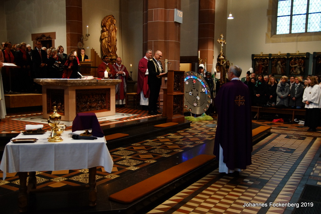 feierte mit Pfarrer Stücker den Gottesdienst und blickte zum Abschluss